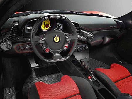 Pensata per i clienti sportivi più esigenti, alla ricerca delle massime performance e emozioni di guida, la F 458 Speciale è essenziale in tutto. Gli interni sono ispirati al mondo delle corse, prediligendo l’utilizzo di materiali tecnici leggeri, nobili e funzionali senza che si sia dovuto rinunciare all’artigianalità e raffinatezza tipica di Ferrari: il binomio alcantara-fibra di carbonio caratterizza così l’abitacolo, coerentemente con il carattere sportivo della vettura.